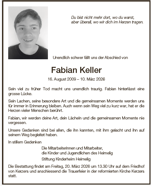 Wir danken der Gemeinde, der Kirchgemeinde, dem Kanton Freiburg wie auch dem Care-Team für die Unterstützung und Hilfe in dieser schweren Zeit.